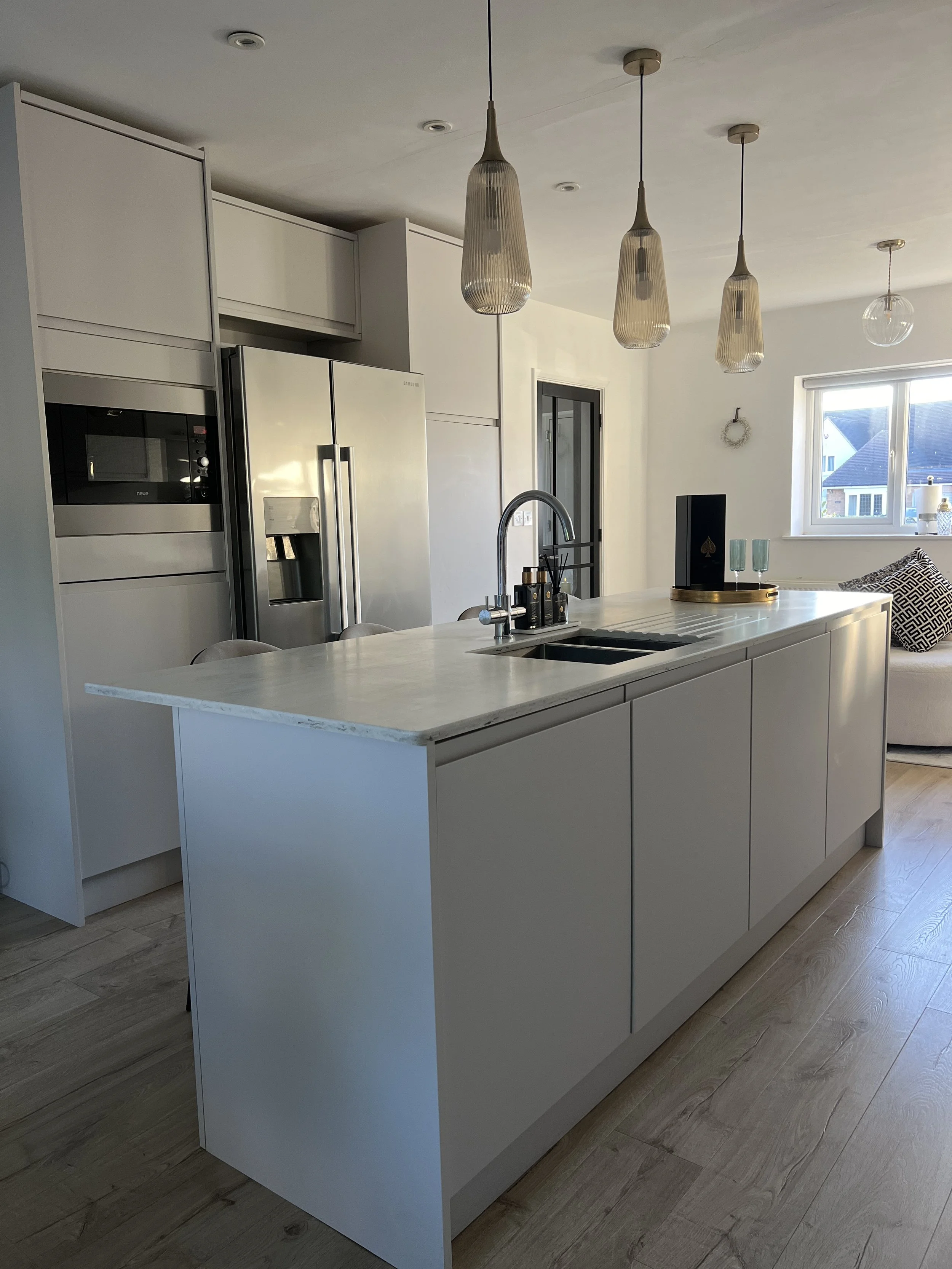We recently completed this stunning kitchen in Brampton, delivering a bright, highly functional, and welcoming space. The design centres on a timeless light grey Shaker kitchen, giving a classic feel while remaining up-to-date thanks to the sleek finishes.